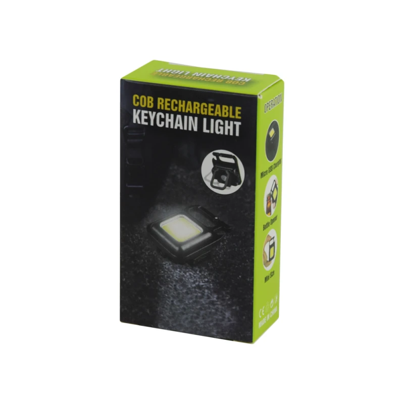 Брелок COB ліхтарик з перезарядженням та номінальною потужністю 9 Вт. Яскравість: 600 лм. Кольорова температура: 5800K. Вбудована батарея 500 мАг. Зарядний порт Type-C. Ступінь захисту: IP44. Матеріал: алюмінієвий сплав + ABS. Габаритні розміри: 61.2 х 45 х 21 мм. Вага: 43 г.