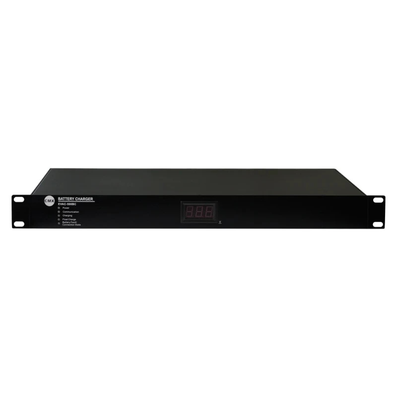 Блок живлення EVAC-500BC CMX здійснює автоматичне перемикання на джерело живлення постійного струму при відмові живлення змінного струму. Забезпечує можливість встановлення автоматичного/ручного режиму заряду акумулятора для забезпечення безпечного заряду та подовження терміну служби. Виявлення несправності акумуляторної батареї, перенапруги, перегріву або тривалого заряджання.