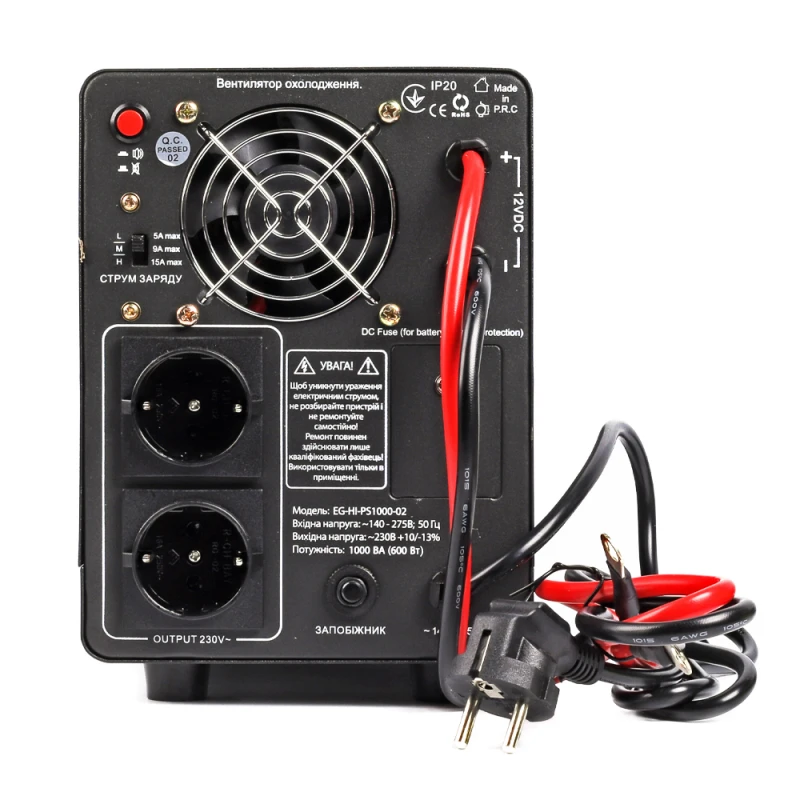 ДБЖ забезпечує швидке заряджання зі струмом до 15А, що особливо важливо під час використання містких акумуляторів. Вбудований стабілізатор напруги працює в діапазоні від 140 до 275 В, ефективно захищаючи підключену техніку від перепадів в електромережі. Перехід на живлення від батареї відбувається практично миттєво — за час не більше 4 мс.