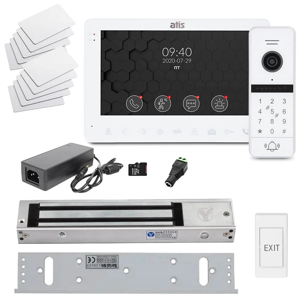 Комплект «ATIS Офіс» – видеодомофон 7", видеопанель со считывателем, электромагнитный замок для организации прохода в помещение по картам доступа Mifare