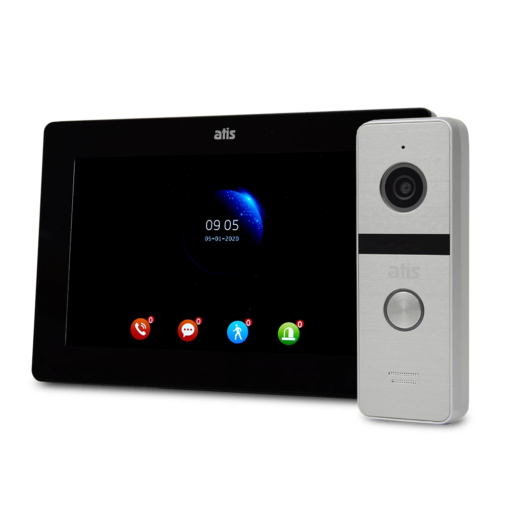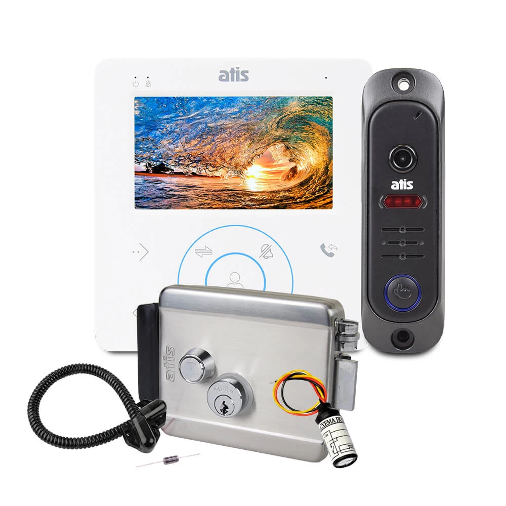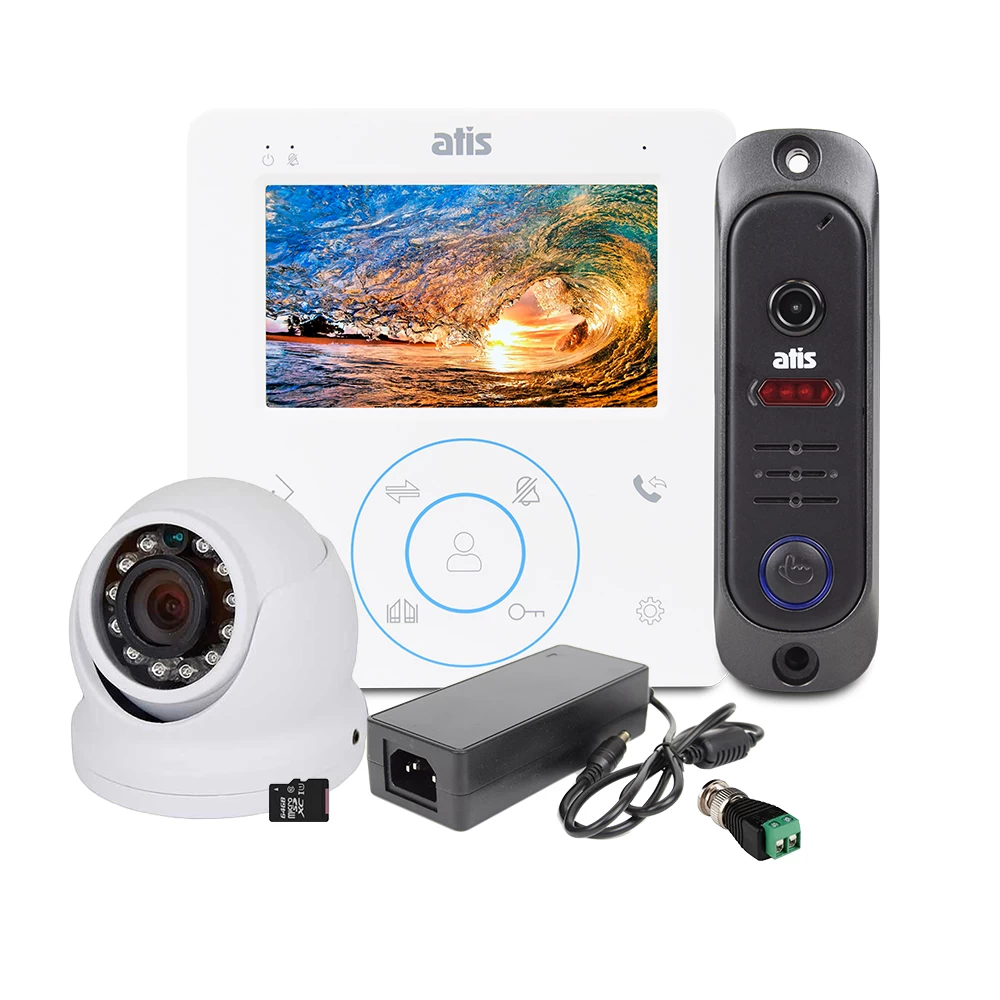 Комплект «ATIS Будинок» – видеодомофон 4" с видеопанелью для доступа в помещение с помощью электромеханического замкалект «ATIS Квартира» – Відеодомофон 4" з відеопанеллю та 2Мп MHD-відеокамерою для обмеження доступу та візуальної верифікації відвідувачів