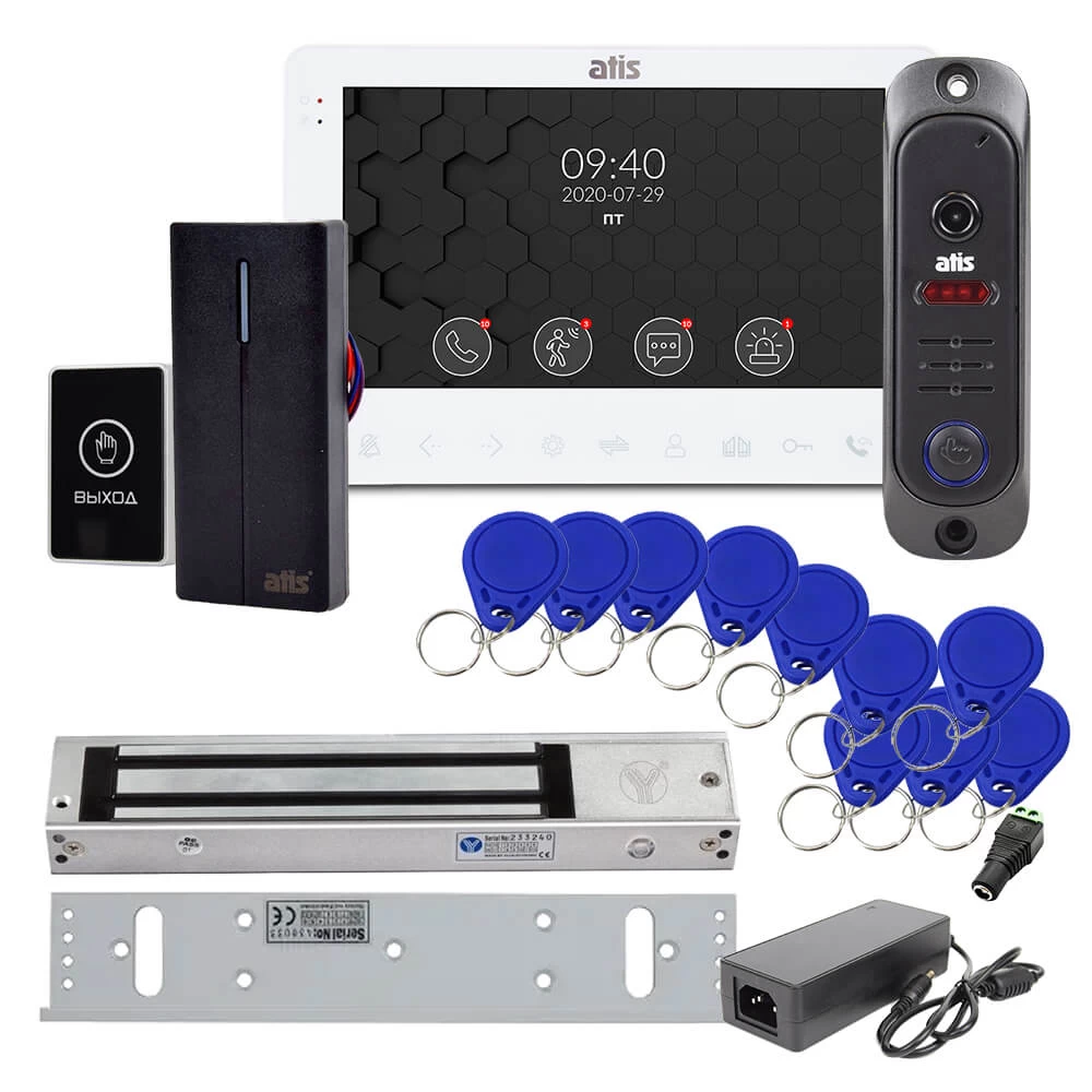 Комплект «ATIS Консьєрж 1» – видеодомофон 7" с видеопанелью, контроллер-считыватель, электромагнитный замок для организации контроля доступа для одной точки прохода по брелокам EM-Marine