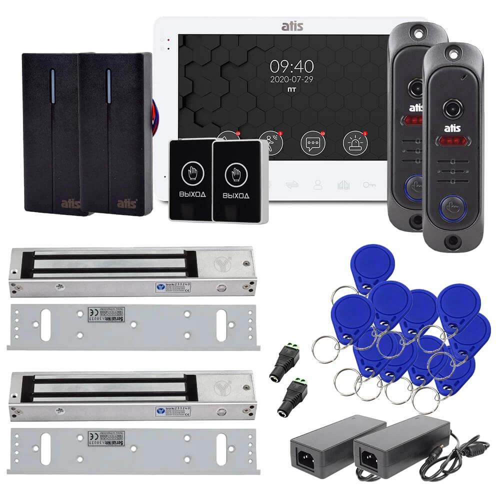 Комплект «ATIS Консьєрж 2» – видеодомофон 7" с видеопанелями, контроллеры-считыватели, электромагнитные замки для организации контроля доступа для двух точек прохода по брелокам EM-Marine