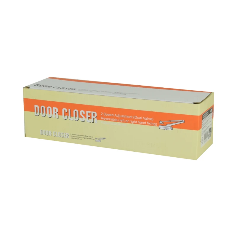 тело доводчика, стандартный рычаг, заглушка на шпиндель, крепежный комплект, монтажная инструкция, коробка