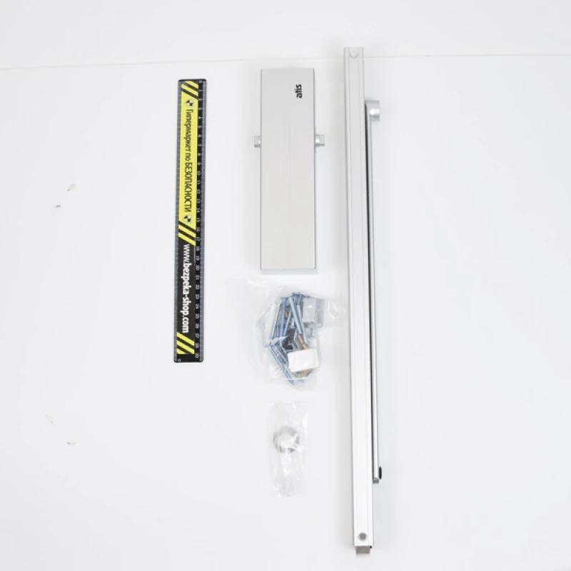 тело доводчика, стандартный рычаг, заглушка на шпиндель, крепежный комплект, монтажная инструкция, коробка
