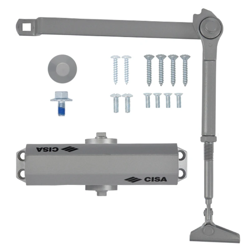 CISA 60461.03 – это доводчик, устанавливаемый накладным монтажом на внутренние и наружные дверные полотна с максимальным весом до 80 кг и шириной до 1100 мм. Непосредственно на корпусе можно регулировать основную скорость и скорость захлопывания. В общем, благодаря таким возможностям регулировки можно добиться максимально индивидуальной настройки закрывания двери так, как Вам нужно.