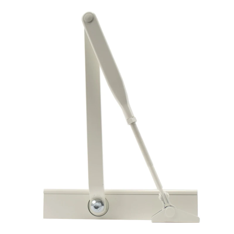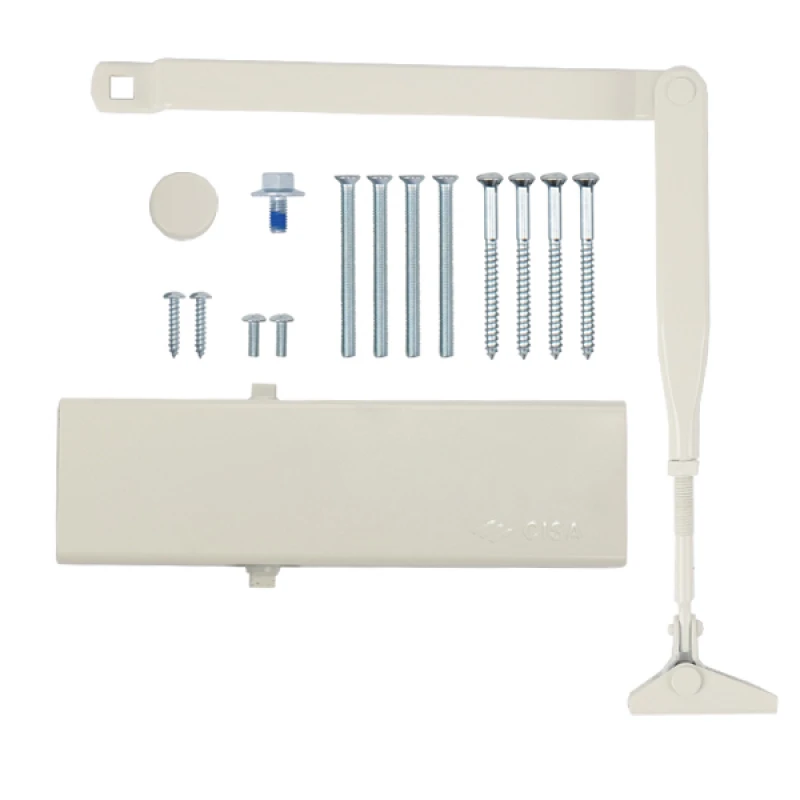 В данной модели сила закрывания EN 2-4 регулируется изменением положения корпуса доводчика и тяги. В комплектации есть стандартная тяга без фиксации дверного полотна в открытом положении. Однако данный доводчик сертифицирован для использования с противопожарной дверью.