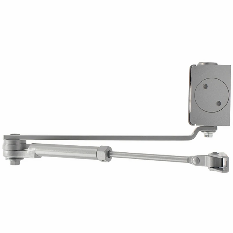 Также в данной модели сила закрывания EN 2-4 регулируется вращением винта на боковой части корпуса. В данной комплектации присутствует стандартная тяга с фиксацией дверного полотна в открытом положении до 130°. Это дает возможность оставить дверь открытой для проветривания или удобства пользования в коммерческих помещениях.