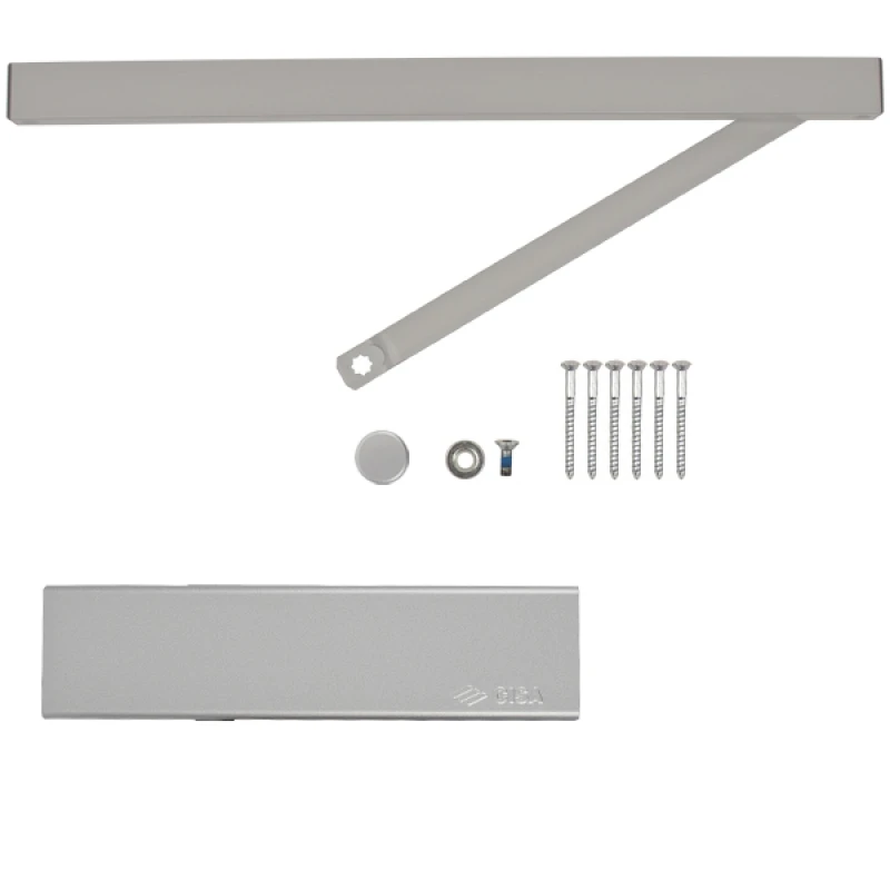 В комплектации присутствует скользящая тяга без фиксации дверного полотна в открытом положении. Однако данный доводчик сертифицирован для использования с противопожарной дверью.