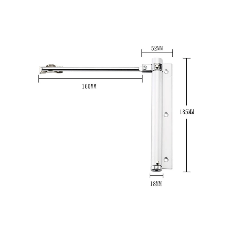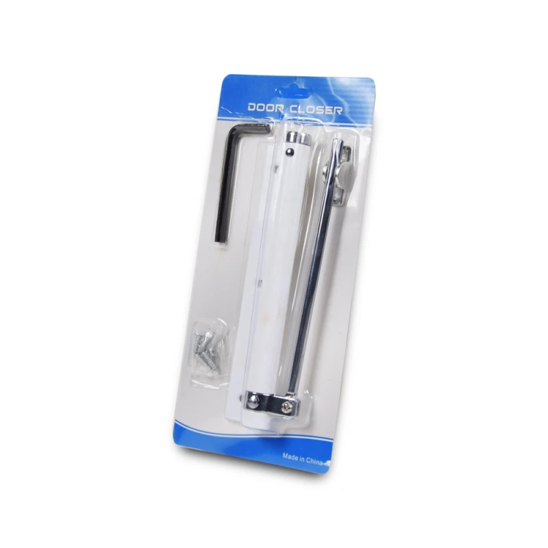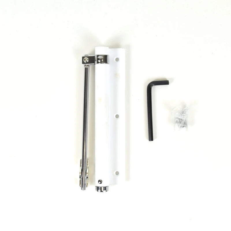ATIS AS-0254 White доводчик с пружинной тягой. В зависимости от типа двери (открытие на или от себя), доводчик устанавливается в средней части дверной коробки или дверного полотна.