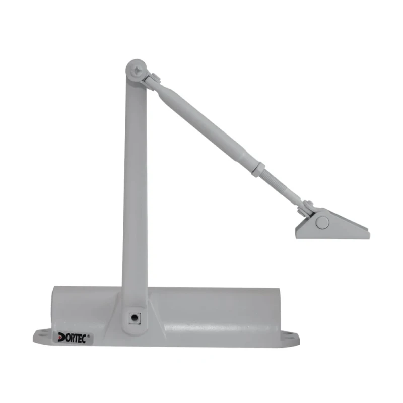 DT-82 – універсальне базове рішення від ТМ Dortec, що підійде для більшості типів дверей. Пристрій універсальний і може встановлюватися як на лівосторонні, так і правосторонні двері. Ресурс циклічності – до 500 тис. циклів. Маса дверного полотна 25-45 кг. Є функція регулювання швидкості закриття та дохлопу.