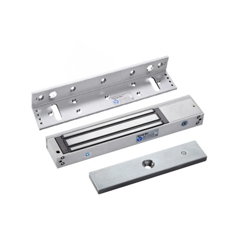 Комплект, состоящий из электромагнитного замка YM-180 с силой удержания до 180 кг на разрыв и уголка монтажного MBK-180L.