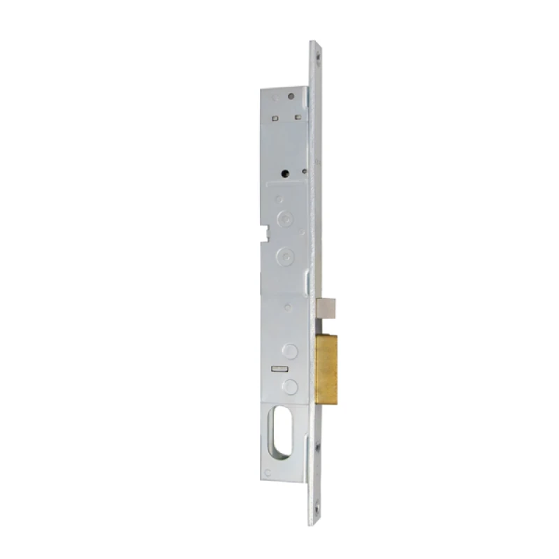CISA 14020.18.1 – это электромеханический замок. Предназначен для стальных и металлопластиковых дверей с ограниченной глубиной установки. Используется также в калитках. Подходит только для ЛЕВОСТОРОННИХ дверных полотен. Управление замком осуществляется электрическим импульсом, который дает устройство управления или сердцевиной. Это означает, что открыть дверь ручками с обеих сторон (разблокировать электромеханический язычок) возможно только после подачи электрического импульса – потянув/толкнув за скобу или кноб (нажимные ручки с данным замком не используются). Например, это могут быть системы контроля доступа или удаленное устройство (реле времени, кодонаборная панель или кнопки). Блокировка механическим и электромеханическим язычками осуществляется автоматически простым закрыванием дверей. Дополнительно открыть замок механическим способом можно с помощью овальной формы цилиндра. Он в комплект не входит.