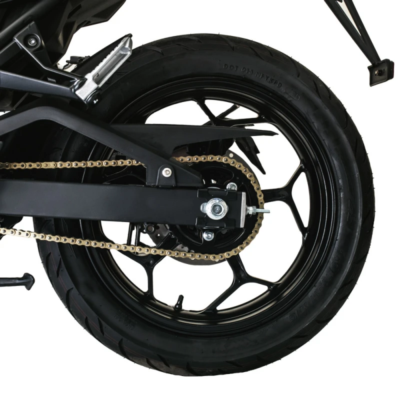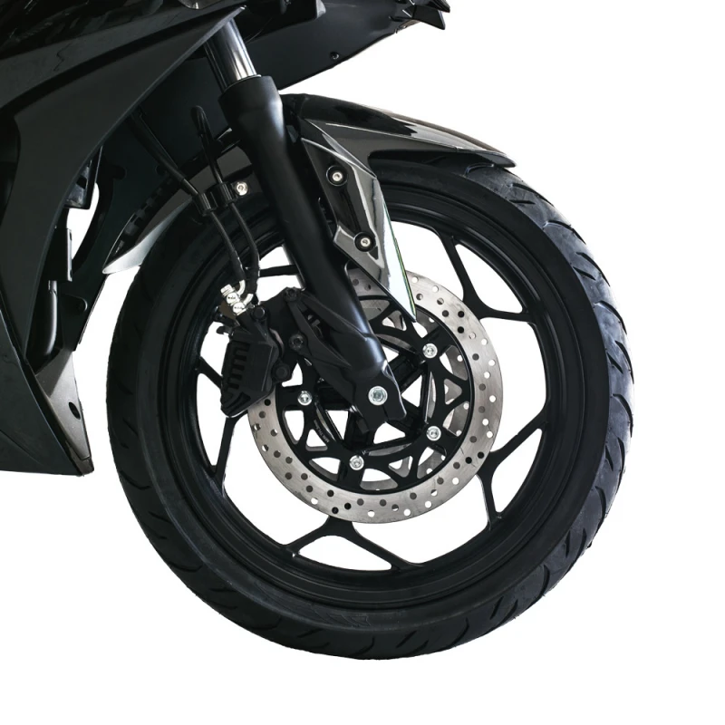 З електроскутером TV6 mid-drive ви можете насолоджуватися максимальною швидкістю до 110 км/год, забезпечуючи плавне і швидке пересування по вашому маршруту. При цьому передні шини розміром 110/70-17 і задні шини розміром 140/60-17, а також дискові гальма гарантують надійне зчеплення з дорогою та безпечне гальмування.