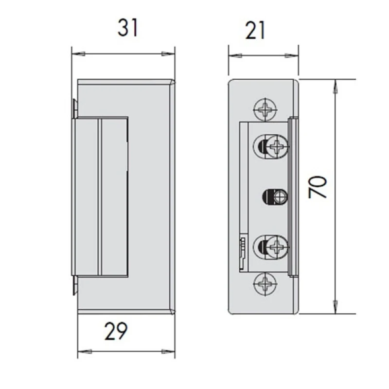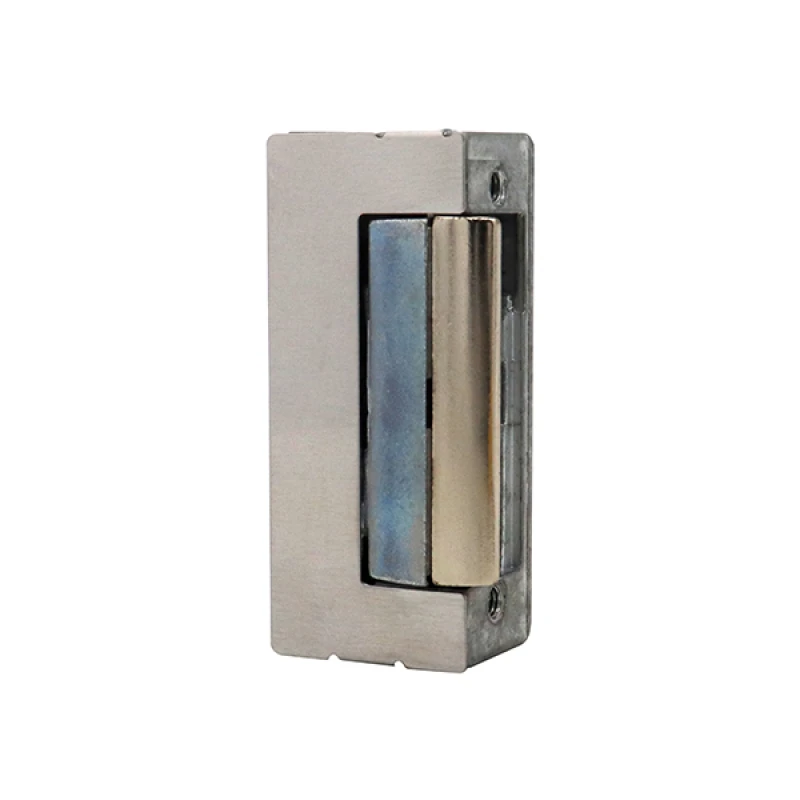 Электрозащелка работает в нормально открытом состоянии. Это означает, что она закрыта при подаче питания, а отпирание происходит снятием напряжения. Станет особенно актуальным для случаев, когда существует необходимость обеспечить гарантированную разблокировку открытой двери при исчезновении питающего напряжения. Например, для быстрой эвакуации людей без использования ключей. Напряжение составляет 12V переменного тока.