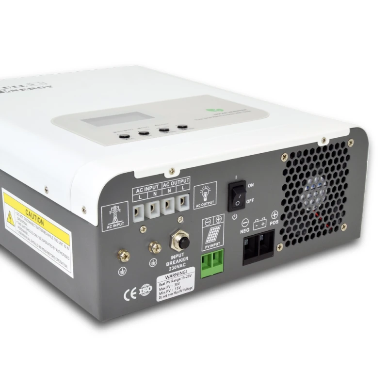 Гібридний інвертор для сонячних панелей, однофазний. Номінальна потужність: 0.8кВт. Вхідна напруга: DC 12 В. Струм зарядки: 20 А. Номінальна напруга: AC 220 В. Форма вихідного сигналу: чиста синусоїда. Функція холодного запуску. Габаритні розміри: 325х263х123 мм