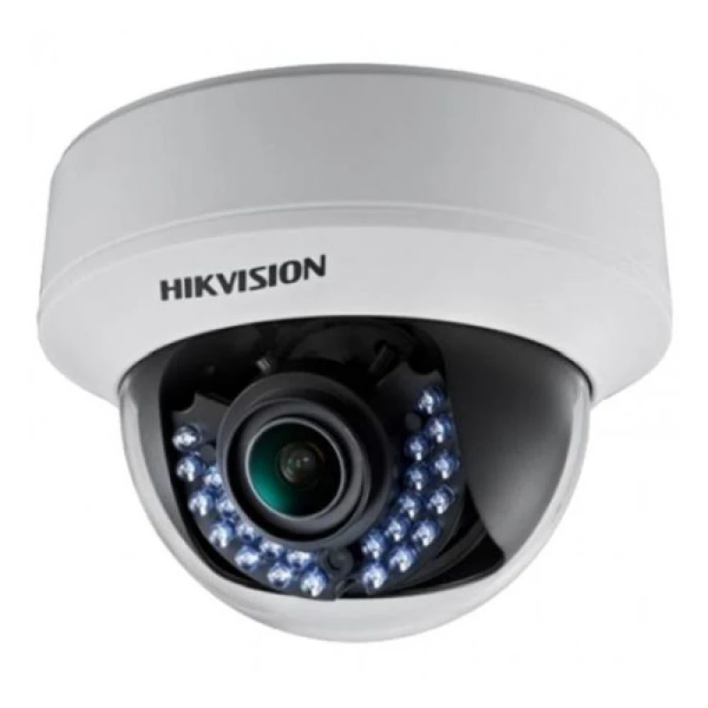 Купольный корпус внутренней камеры Hikvision DS-2CE56D0T-VFIRF(2.8-12mm) выполнен из пластика. Белый цвет делает установку этой камеры практически незаметной и подойдет под любой интерьер.