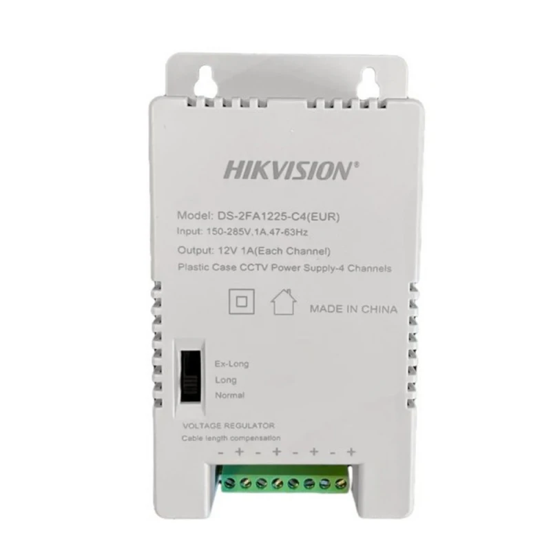 Импульсный источник питания Hikvision DS-2FA1225-C4 (EUR) – это многоканальное импульсное устройство для надежного и эффективного питания разнообразного оборудования, работающего на постоянном токе 12 В. Этот блок питания предназначен особенно для видеокамер и других средств наблюдения, обеспечивая им стабильную энергию в широком диапазоне входных напряжений – от 150 до 285 В.