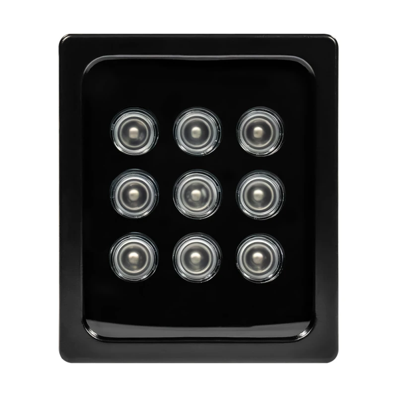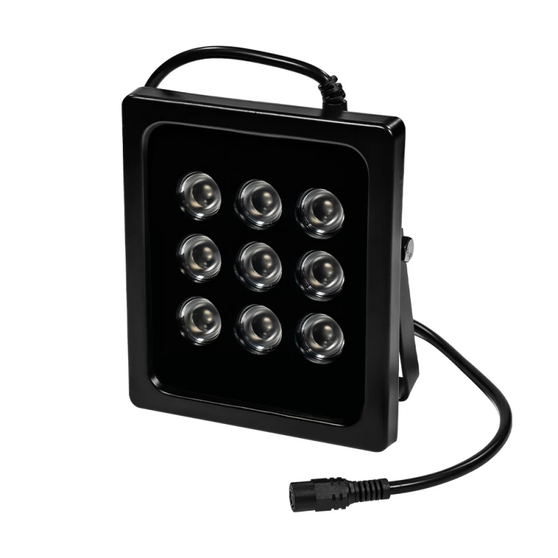 - ІЧ-прожектор з 9 світлодіодів, з довжиною хвилі 850 нм і кутом променя 90°.