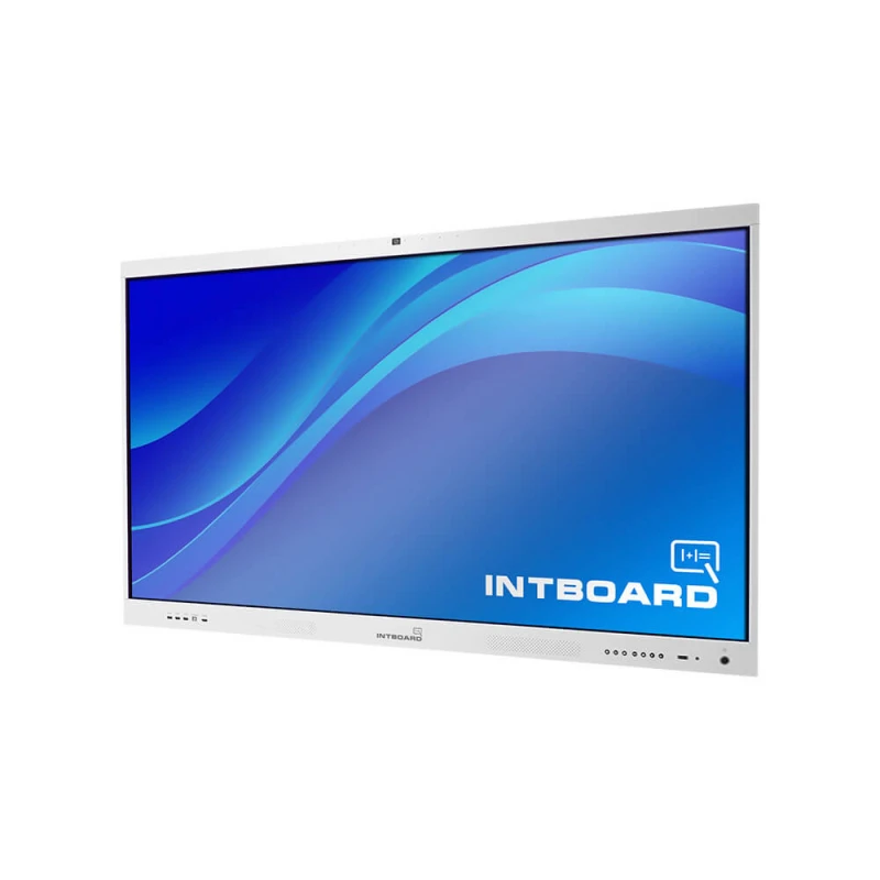 Інтерактивна панель INTBOARD GT86CF W з екраном 86" (3840x2160) та сенсорною технологією мультитач, призначена для конференц-дзвінків, презентацій, навчальних сесій та відтворення мультимедійних файлів.