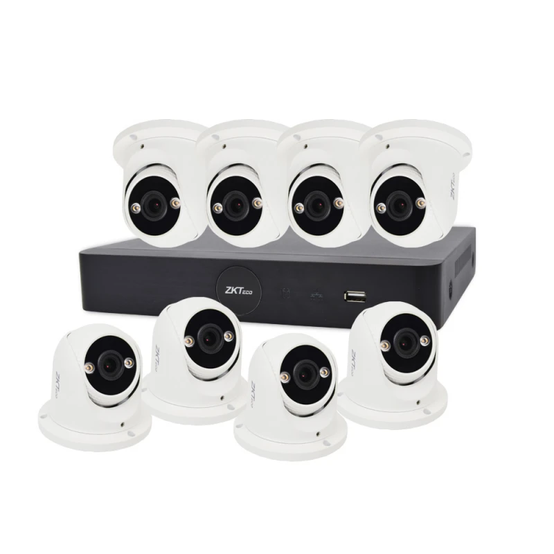 Комплект IP видеонаблюдения для самостоятельной установки ZKTeco KIT-8508NER-8P/8- ES-852T11C-C включает: 1 IP видеорегистратор, 8 уличных купольных IP видеокамер 2Mp разрешения.