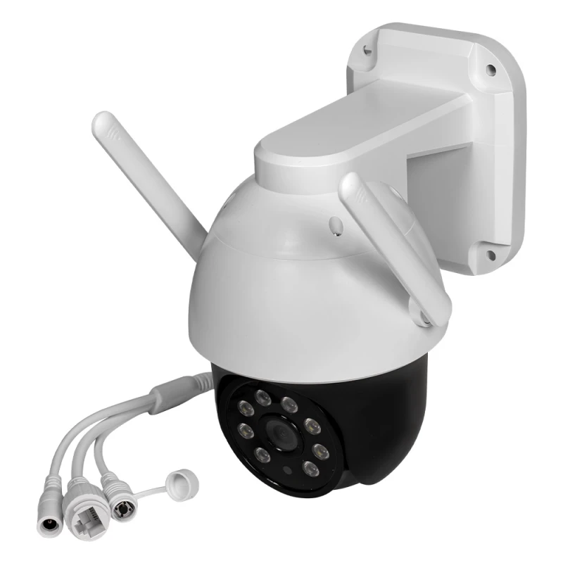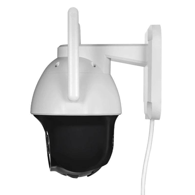 5Mp вулична поворотна IP-відеокамера з підтримкою Wi-Fi (2.4 ГГц) з подвійним підсвічуванням ІЧ+LED; роздільна здатність запису 2880*1620 пікселів; відеокодек H.265/H.264; об'єктив f=4 мм; ІЧ-підсвічування 20 м + LED-підсвічування 15 м; кут повороту 0-270°, кут нахилу 0-80°; вбудований мікрофон та розмовний динамік; двостороннє аудіо високої якості; функція автотрекінгу; віддалений моніторинг на смартфонах iOS та Android (застосунок CareCamPro); вбудований PIR-датчик із виявленням руху до 12 м; запис за детекцією руху на карту micro SD (до 128 Гб); живлення 12В/0.8А, блок живлення у комплекті DC12В/2А; клас захисту IP66; пластиковий корпус; розміри 150 / 150 / 109 мм, вага 445 г