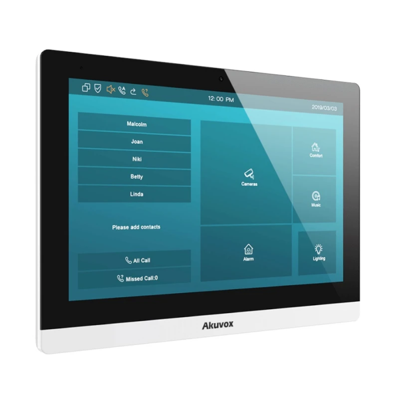 Видеодомофон C317S с цветным сенсорным 10-дюймовым экраном. ОС Android. Память: 2 ГБ / 8 ГБ. Отображение изображения HD качества с вызывной панели. Двухсторонняя аудиосвязь по протоколам SIP v.1 и v.2. Встроенный голосовой ассистент, 2 релейных выхода, 2 разъема RJ45, поддержка PoE. Возможность настенного монтажа в электрическую коробку. Возможность настольной установки.