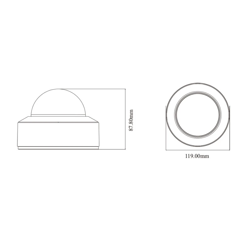 5Mp IP-відеокамера з функціями аналітики; матриця 1/2.7″ CMOS; роздільна здатність 5Mp (2592*1944); фіксований об’єктив f=2.8 мм; кути огляду 99.87° горизонтальний, 70.36° вертикальний; ІЧ-підсвічування до 30 м; відеокомпресія H.265+/H.265/H.264+/H.264; чутливість 0.002 Люкс @F1.6, AGC увімкнено, 0 Люкс з ІЧ; 3 відеопотоки; мережа: RJ45 100M; ONVIF; живлення DC12V/PoE, споживання 6 Вт; 1 аудіовхід, 1 аудіовихід, вбудований мікрофон; 1 тривожний вхід, 1 тривожний вихід; запис на microSD карту (до 256 Гб); ступінь захисту IP67; габаритні розміри Ø 119 / 87.8 мм; вага 0.65 кг