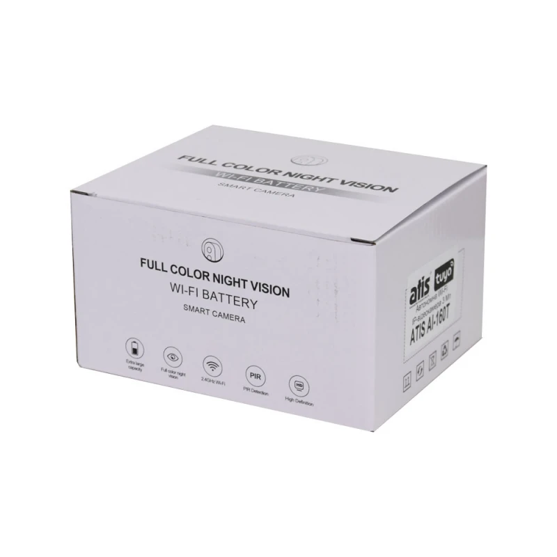 Wi-Fi відеокамера ATIS AI-160T — сучасне рішення для організації відеоспостереження без зайвих складнощів з прокладанням кабелів. Завдяки вбудованим акумуляторам високої ємності пристрій може автономно працювати тривалий час, а підтримка Wi-Fi 2,4 ГГц дозволяє швидко налаштувати зв'язок і отримувати зображення на смартфон з будь-якої точки, де є інтернет. Камера оснащена об'єктивом 3,6 мм і матрицею 3 Мп, забезпечуючи деталізовану картинку вдень і вночі, а подвійна система підсвічування — інфрачервона і біла — дозволяє бачити все навіть у повній темряві.