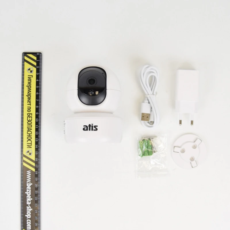 Внутренняя поворотная IP-камера ATIS AI-262T с Wi-Fi, разрешением видео 2 Мп, ИК-подсветкой, функцией автотрекинга и поддержкой карт памяти microSD до 128 ГБ, со встроенным микрофоном и динамиком. Управление камерой осуществляется с помощью приложения Tuya Smart для мобильного телефона (iOS | Android) или через веб-интерфейс ПК. Подключение устройства к сети интернет через Wi-Fi.