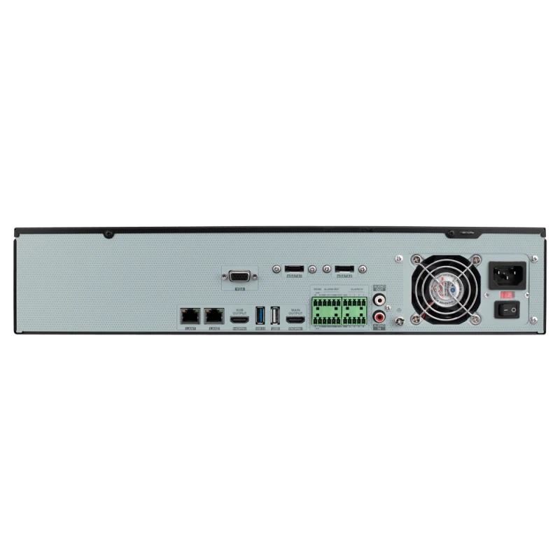 IP-видеорегистратор (NVR) рассчитан для подключения до 32-х IP-камер видеонаблюдения высокого разрешения. Запись видеоархива ведется на 8 HDD SATA 3.5" емкостью до 10 ТБ (приобретаются отдельно). Стандарт компрессии видео H.265+ / H.265 / H.264+ / H.264.