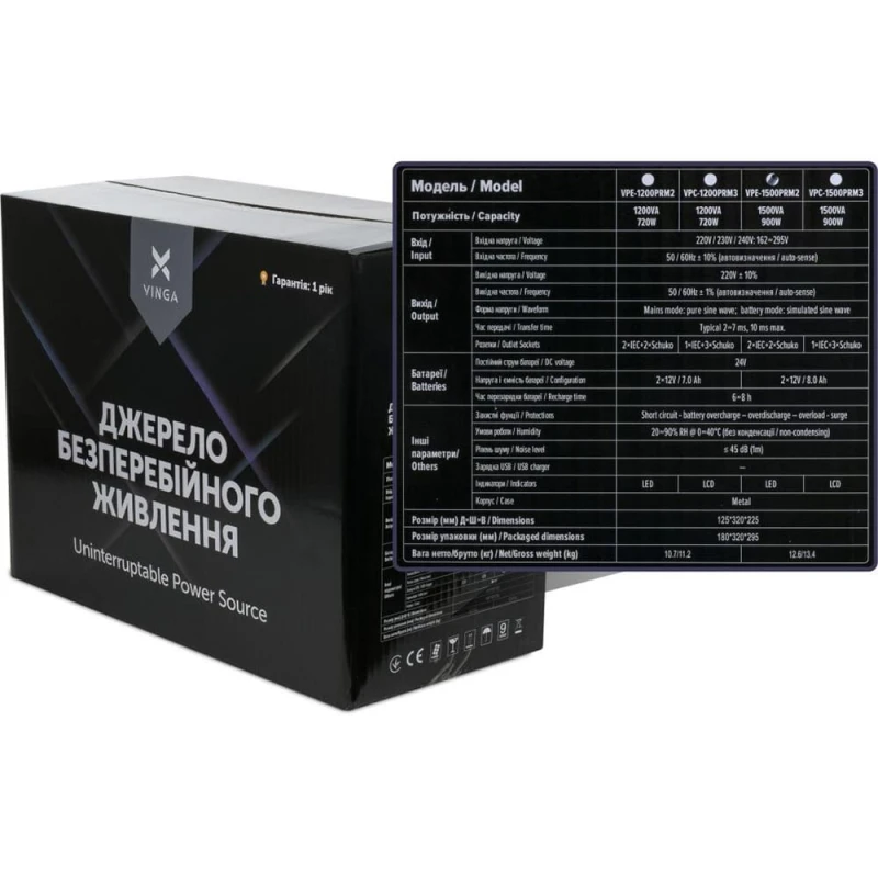 Источник бесперебойного питания Vinga VPE-1500PRM2 1500ВА / 900 Вт с LED-индикацией в металлическом корпусе