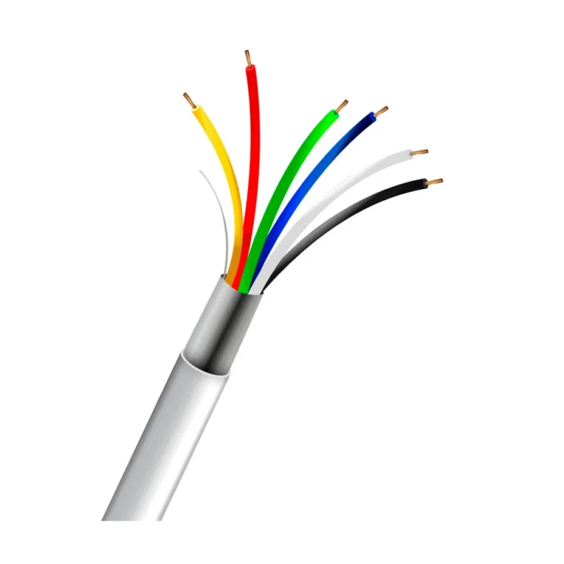 Кабель сигнальний, 6 жил з біметалу ССA – алюмінієвий сплав покритий міддю – перерізом 0.22 мм2, екран з фольги, оболонка PVC-пластикат білого кольору, опір жили 14.5 Ом/100 м, бухта 100 м