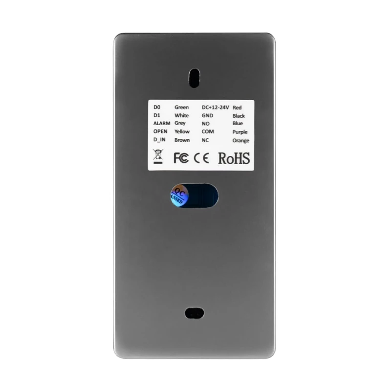 Автономна сенсорна клавіатура/контролер з вбудованим зчитувачем карт і брелків стандарту Mifare (13.56 Mhz) може працювати з мобільним додатком eWeLink, є підсвічування клавіатури, контроль доступу по відбитку пальця, дальність зчитування карт 2-5 см, металевий антивандальний корпус, W : 10 000 карт / кодів та 300 відбитків пальців, відкриття дверей: картка, код, відбиток пальця, мобільний додаток, час відкриття дверей 0~99 сек, ступінь захисту: IP65, живлення: DC12В-24В/30мА, габарити: 139х70х2 робоча температура -40℃~60℃.