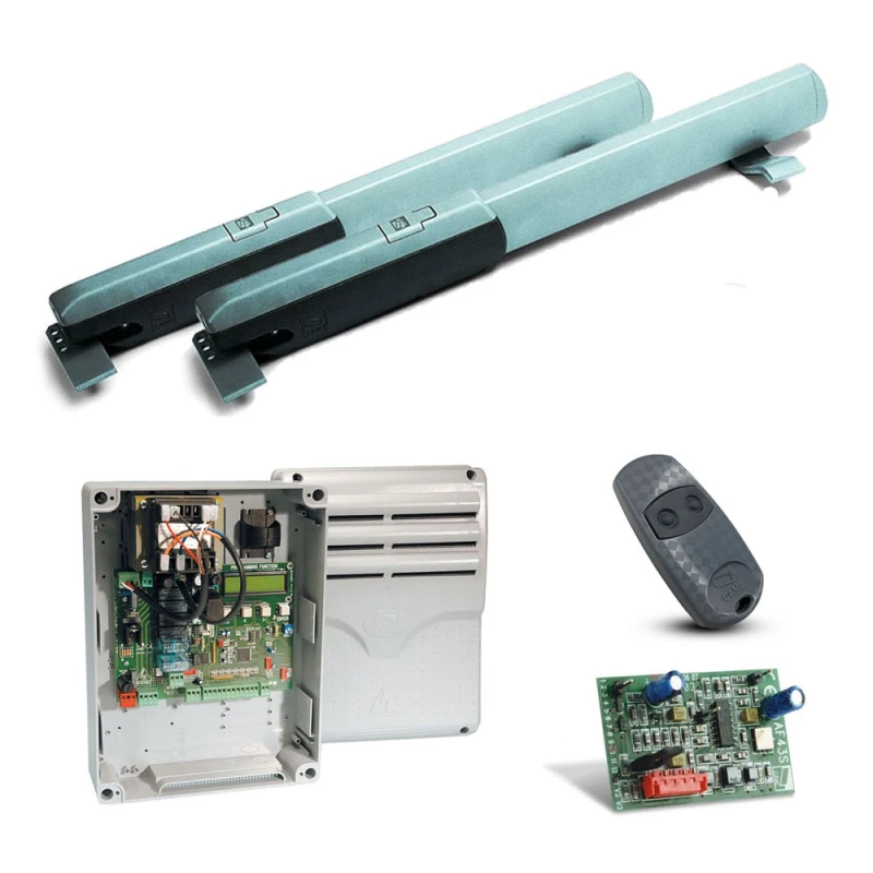 Комплект автоматики для распашных ворот шириной до 5 м и весом до 1000 кг ATI 5024 с приводом интенсивного использования. В состав комплекта входят: 2 привода самоблокирующиеся с концевиками A5024N, панель управления в коробе ZL180, одноканальный радиоприемник AF43S, двухканальный пульт дистанционного управления TOP-432EE. Комплект подходит для ворот, открывающихся как наружу, так и внутрь территории.
