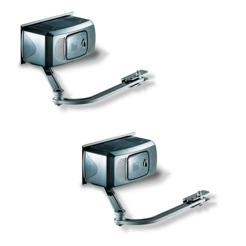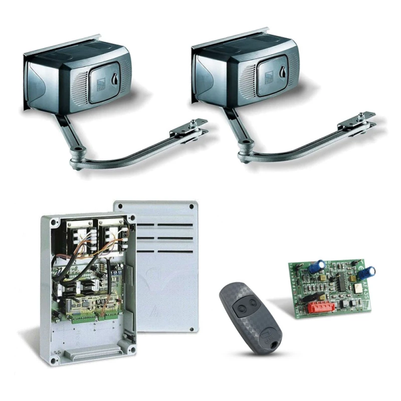 Комплект автоматики для распашных ворот шириной до 4 м и весом до 800 кг ATS 3000 с возможностью установки на широкие столбы. В состав комплекта входят: 2 привода самоблокирующиеся с концевыми выключателями F1000, панель управления в коробе ZA3P, одноканальный радиоприемник AF43S, двухканальный пульт дистанционного управления TOPD2R.