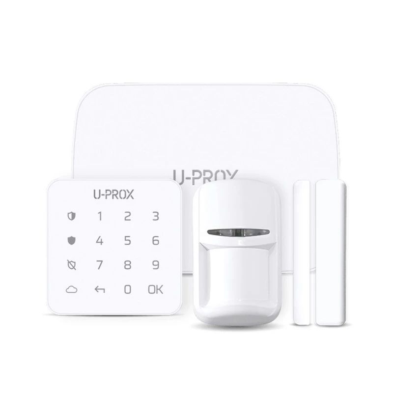 Комплект беспроводной охранной сигнализации U-Prox MP на 99 беспроводных и 2 проводные зоны. В комплект входит: базовый блок U-Prox MP center, датчик движения U-Prox PIR, магнитоконтактный извещатель U-Prox WDC mini (с дополнительным корпусом), клавиатура MAKS Keypad mini.
