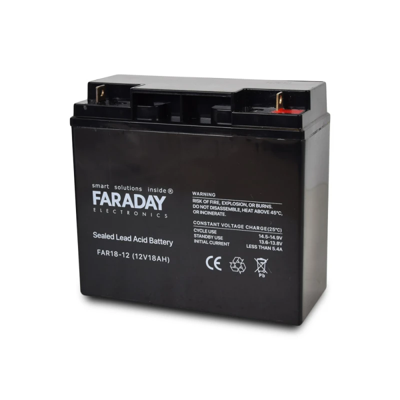 Свинцово-кислотный Аккумулятор FAR18-12 выполнен в герметическом корпусе и произведен по технологии AGM (Absorbent Glass Mat). Данная технология подразумевает использование не жидкого, а абсорбированного электролита. Безопасен для использования в жилых помещениях, так как AGM аккумулятор практически не выделяет вредных или опасных газов и не требует обслуживания в течение всего срока службы.