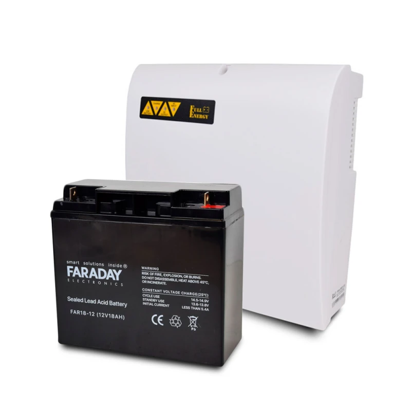 Комплект состоит из бесперебойного блока питания Full Energy BBGP-1210 и аккумулятора 12В 18 Ач для ИБП Faraday Electronics FAR18-12