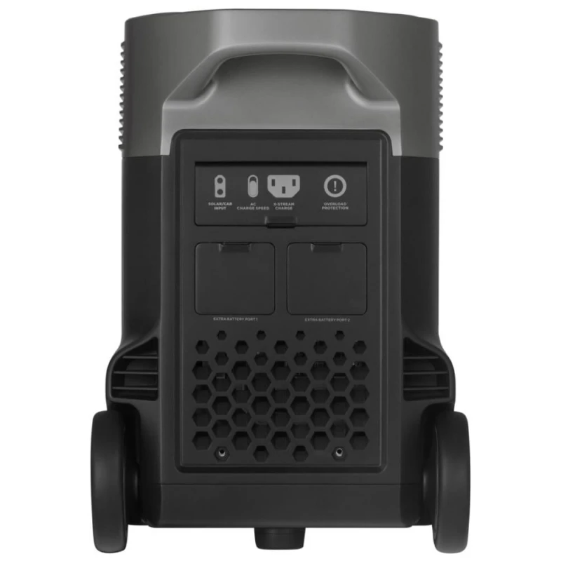 - Вы можете взять DELTA Pro с собой, куда бы вы ни пошли. Он оснащен колесами и выдвижной ручкой в виде чемодана, которая упрощает транспортировку.