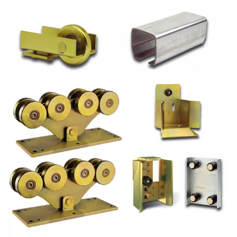 Комплектация:несущий профиль 6 м, 2 опорные роликовые платформы, ролик концевой, улавливатель концевой, верхняя пластина с роликами, верхний улавливатель