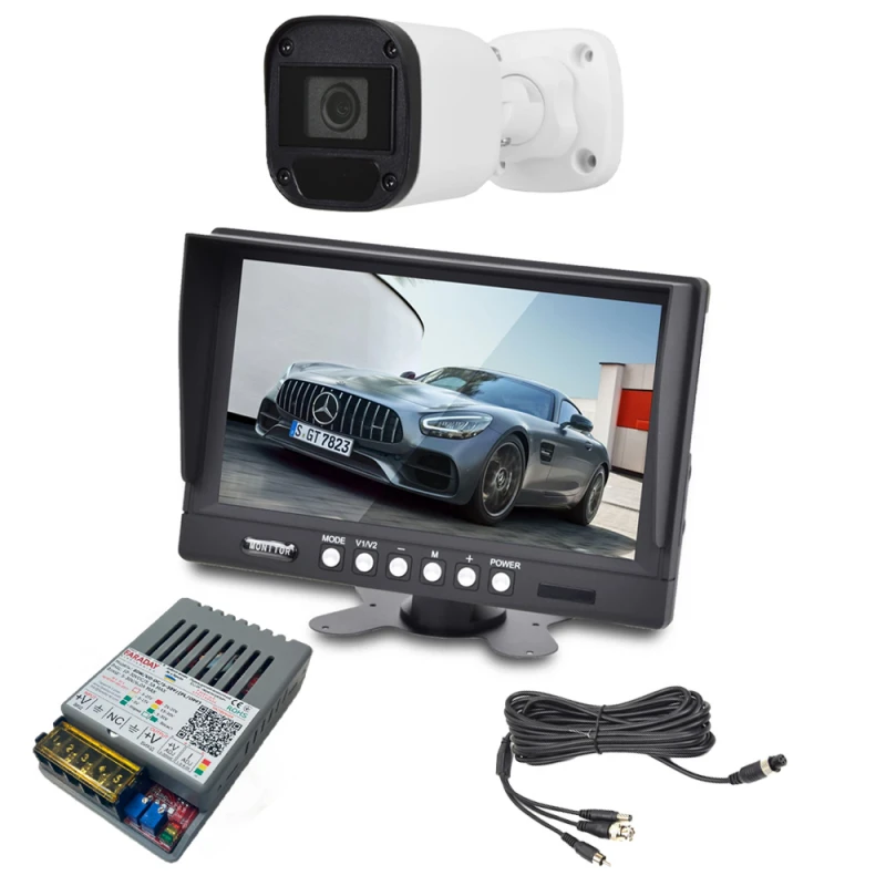 Также комплект комплектуется повышающим – понижающим преобразователем Faraday Electronics DC/DC 80W/UD-DC/5-30V для получения стабильного напряжения в диапазоне DC 4.7-29.5В независимо от входного напряжения в диапазоне 10-30V DC. И кабелем–переходником длиной 5 метров для подключения видеокамеры с разъемом BNC к 9-дюймовому монитору ATIS ASM-7 с разъемом типа AVIA. По данному переходнику может передаваться видеосигнал, аудио и питание.