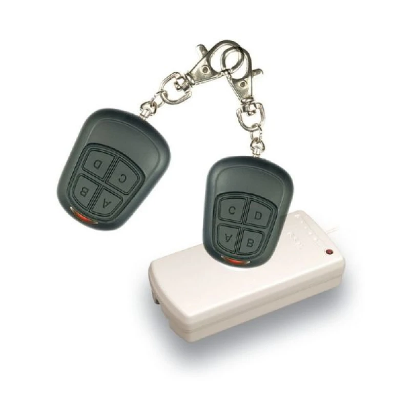 Беспроводной четырехканальный комплект тревожной сигнализации ACS-144R, состоит из 1 радиоконтроллера и 2 радиобрелков. Зона приёма сигнала на открытом пространстве 500м.