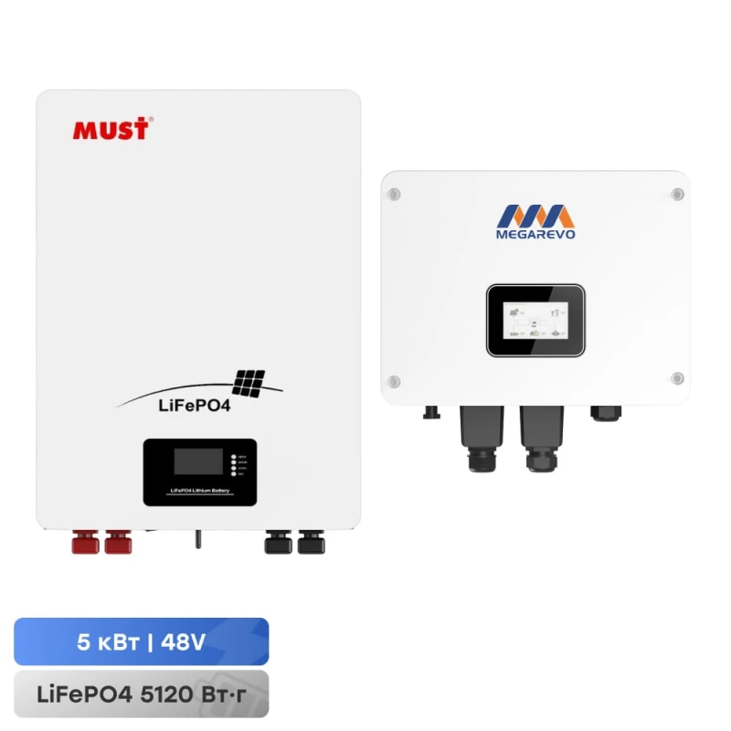 Комплект резервного живлення: гібридний інвертор 5kW Megarevo й акумуляторна батарея 100Аг 51.2В 5120Втг Must LiFePO4