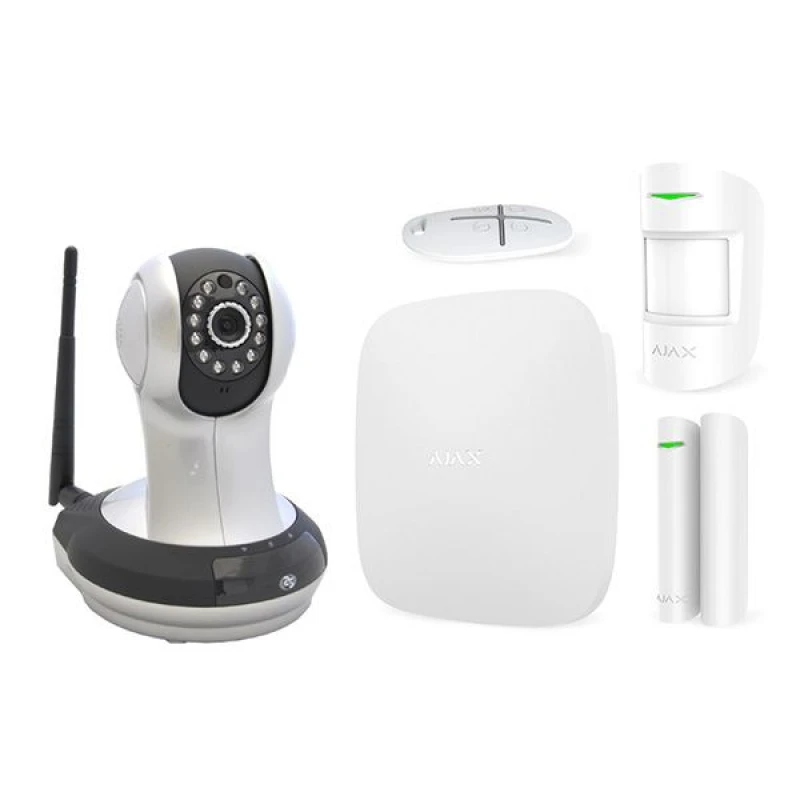 Комплект беспроводной сигнализации Ajax Starter Kit - базовый комплект сигнализации для обеспечения безопасности дома, работающий по беспроводной технологии Jeweller + цветная облачная поворотная IP-видеокамера AI-361 для установки в помещении с ИК-подсветкой, датчиком движения и WI-FI.