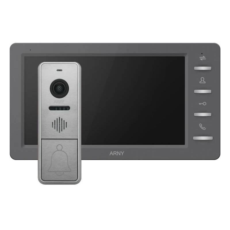 Состоит из цветного видеодомофона графитового цвета с IPS экраном 7 дюймов и цветной вызывной панели серебряного цвета с разрешением 1Мп (1280x720) и накладным способом установки. К домофону возможно подключить 2 CVBS видеопанели и 2 аналоговые видеокамеры, поддерживается запись фото/видео, есть детектор движения на 1 канал, где есть движение), слот для карт памяти до 32ГБ.