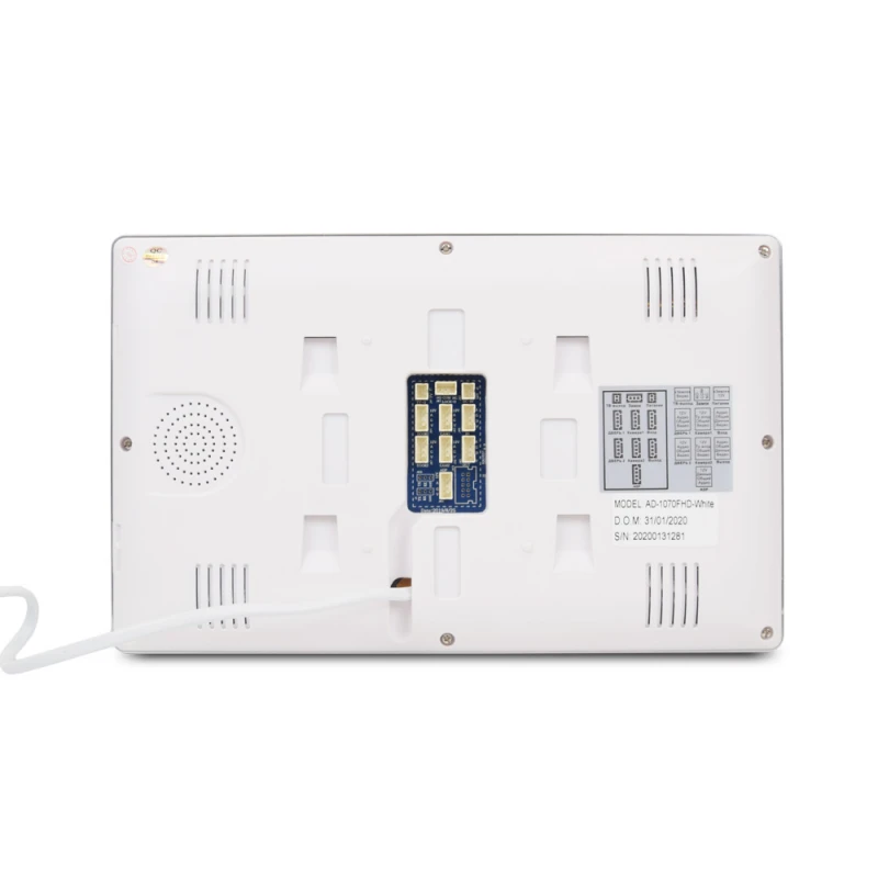 - домофон AD-1070FHD/T оснащен цветным IPS-экраном с диагональю 10 дюймов и разрешением 1024*600 пикселей;