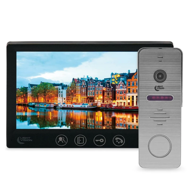 Комплект відеодомофона Light Vision: домофон 7" AMSTERDAM FHD Black та відеопанель RIO FHD Grey