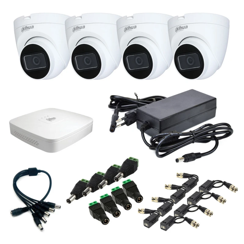 Комплект видеонаблюдения внутренний 2 Мп включает в себя XVR видеорегистратор 4-канальный Dahua DH-XVR4104C-I с AI функциями для систем видеонаблюдения, 4 HDCVI видеокамеры Dahua 2 Мп DH-HAC-HDW1200TRQP (2.8mm), блок питания Full Energy BGP-125Pro 12В / 5А, 4 приемника-передатчика ATIS AL-200 UHD (pair), разветвитель питания ATIS L5, 4 разъема-power ATIS под зажим (мама), 4 разъема-power ATIS под зажим (папа). К комплекту требуется отдельно приобрести кабель нужной длины в зависимости от поставленной задачи, и при необходимости — монитор.