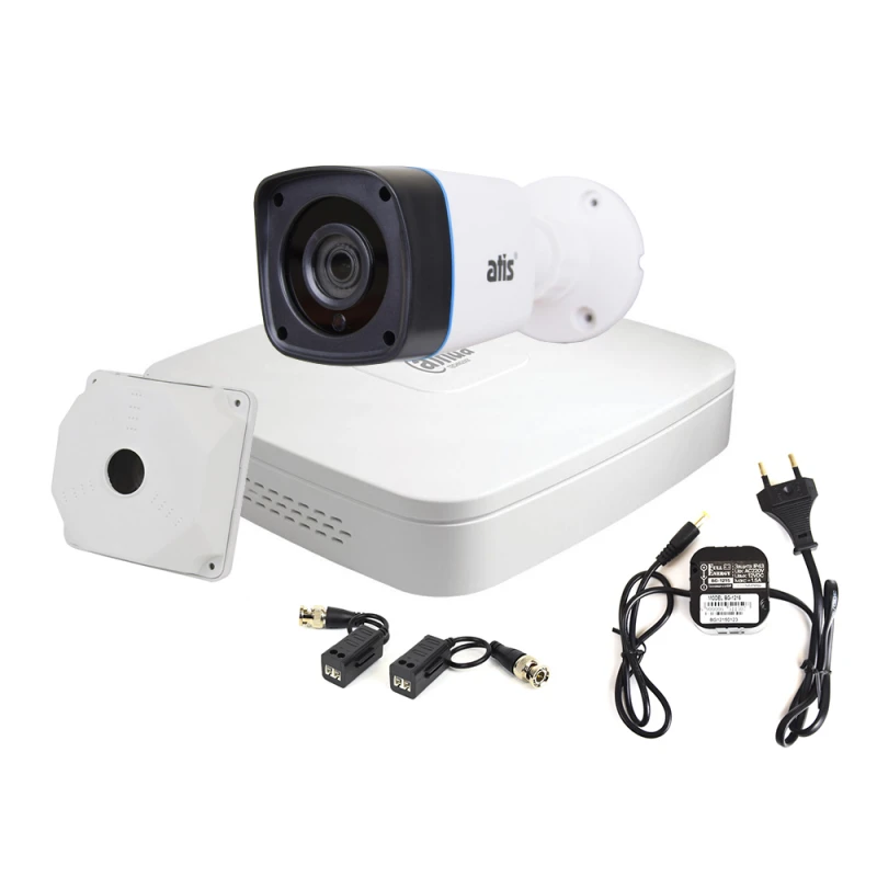 Комплект видеонаблюдения для улицы 2 Мп включает в себя XVR видеорегистратор 4-канальный Dahua DH-XVR4104C-I с AI функциями для систем видеонаблюдения, MHD-видеокамеру ATIS AMW-2MIR-20W/2.8 Lite, блок питания Full Energy BG-1215 12 В / 1.5 А, монтажную коробку ATIS AB-Q130 (SP-BOX-130), приемник-передатчик ATIS AL-200 UHD (pair).